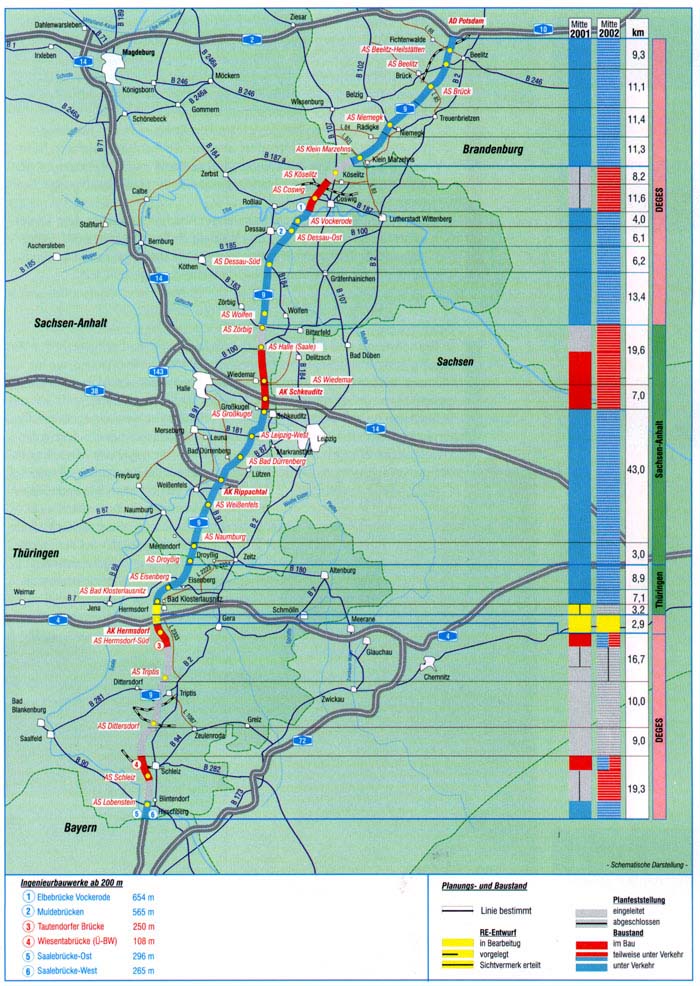 Straßenbaubehörden von Sachsen-Anhalt (72,6 km), Thüringen (21 km) und Bayern