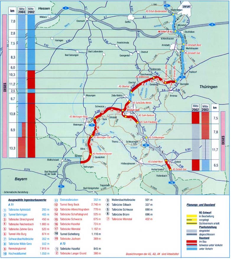 der A 71 sowie 14 km auf der A 73 im Bau. Davon sind alleine 11,5 km Tunnel (3)