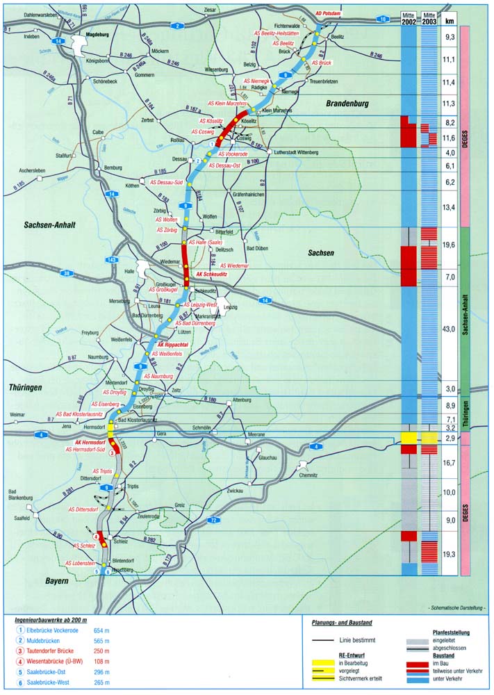 übergeben. In Sachsen-Anhalt sind 29,7 km von der Elbebrücke Vockerode Richtung Süden seit Sommer 2002 sechsstreifig