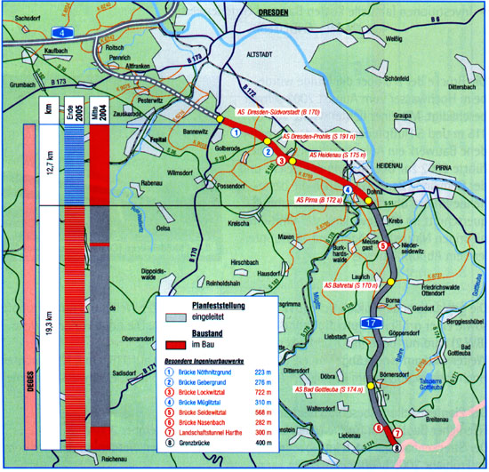 Planfeststellungsbeschluß vor. Die Großbrücken Seidewitztal und Nasenbachtal sowie der Landschaftstunnel Harthe sind als