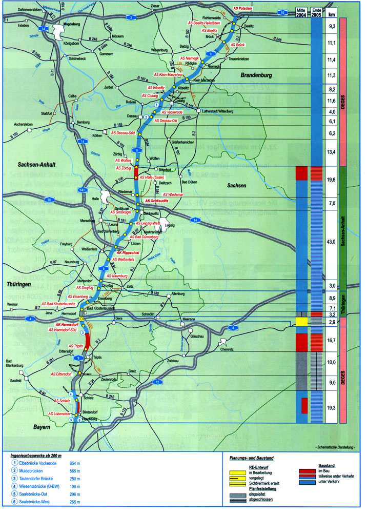 die Abschnitte in Sachsen-Anhalt sind seit November 2003 in Betrieb.