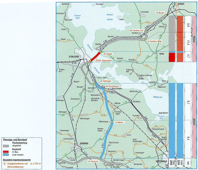 Die Projektverantwortung für diese wichtige Verkehrsverbindung zwischen der A 20 und der Insel Rügen liegt (mit Ausnahme der Ortsumgehung Stralsund) seit 1999 in den Händen der DEGES.