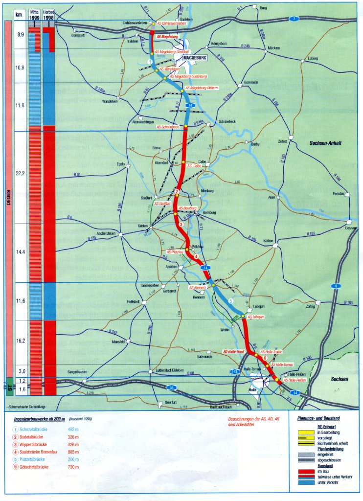 - 36,6 km zwischen AS Schönebeck und AS Könnern